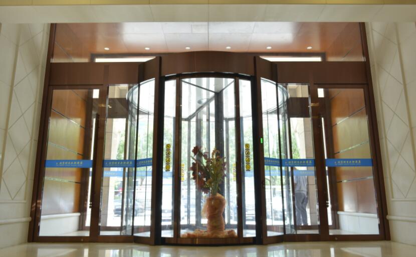 两翼自动旋转门 咖啡色拉丝抗指纹不锈钢