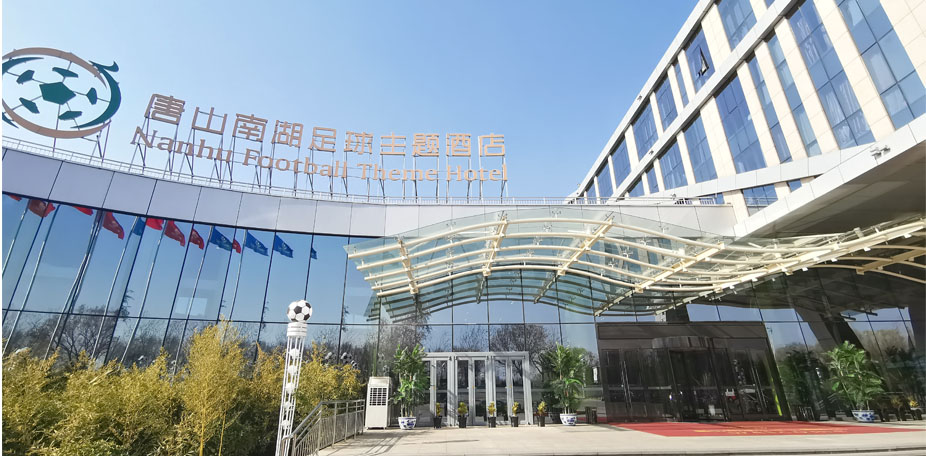 唐山南湖足球主题酒店 两翼豪华自动旋转门 钛黑色拉丝抗指纹不锈钢