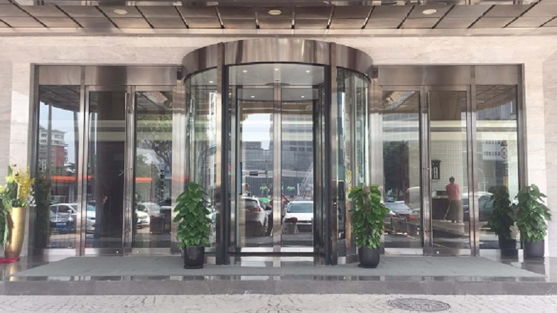 厦门庐山大酒店 两翼超高自动旋转门 钛黑拉丝不锈钢
