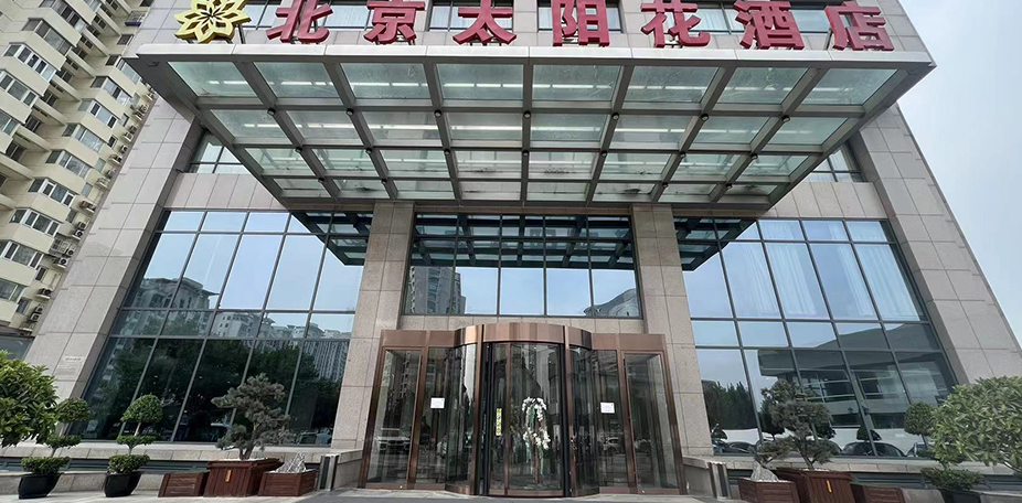 北京太阳花酒店 门体直径:3800mm 门体高度:3400mm 表面包饰:青铜拉丝不锈钢