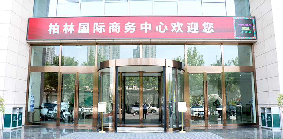 太原柏林国际商务中心 门体直径:4200mm 门体高度:3200mm 表面包饰:玫瑰金拉丝抗指纹不锈钢